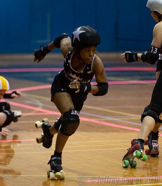 CleoPAINtra: I guess the biggest difference that I found was that adult derby includes a lot more strategy, while junior derby is more like “go rogue.” I enjoy both.